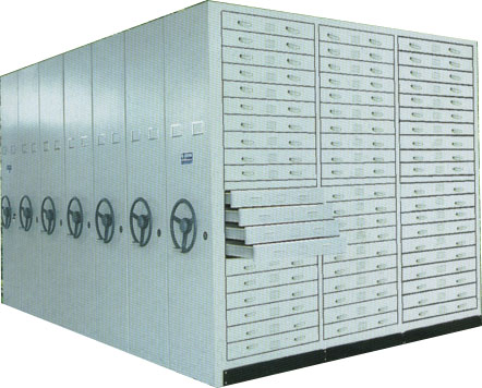 底圖柜不同于檔案密集柜,采用的是抽屜式結(jié)構(gòu),每列擁有百余個抽屜。特殊的結(jié)構(gòu)也決定了它的作用只能用來存放設計圖、書畫、數(shù)據(jù)表等文件。因容量大、利用空間、使用方便。